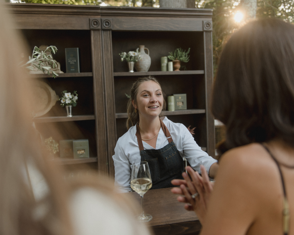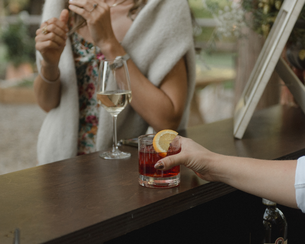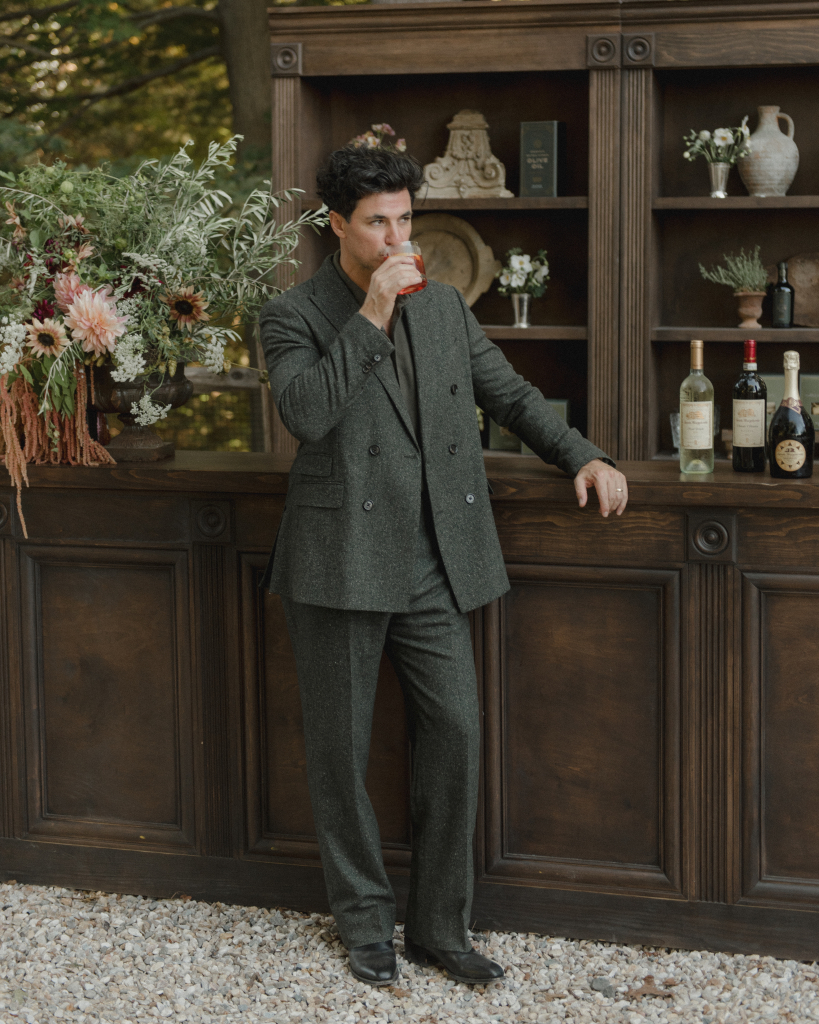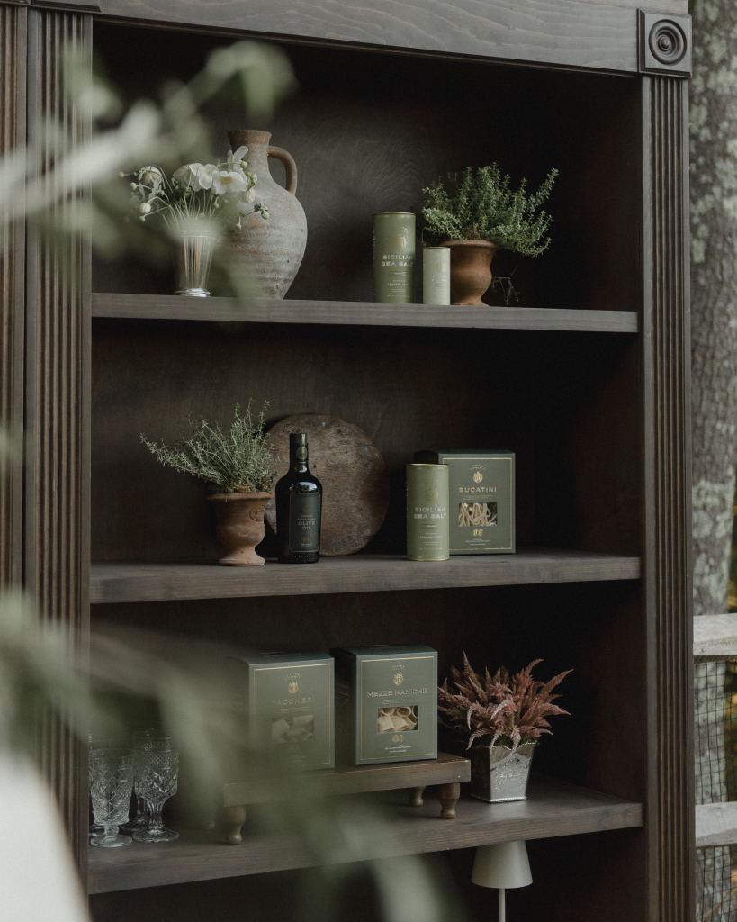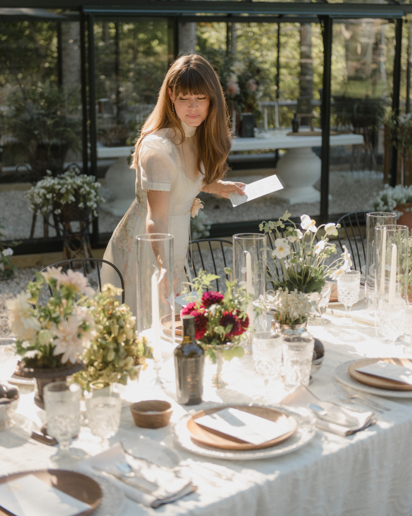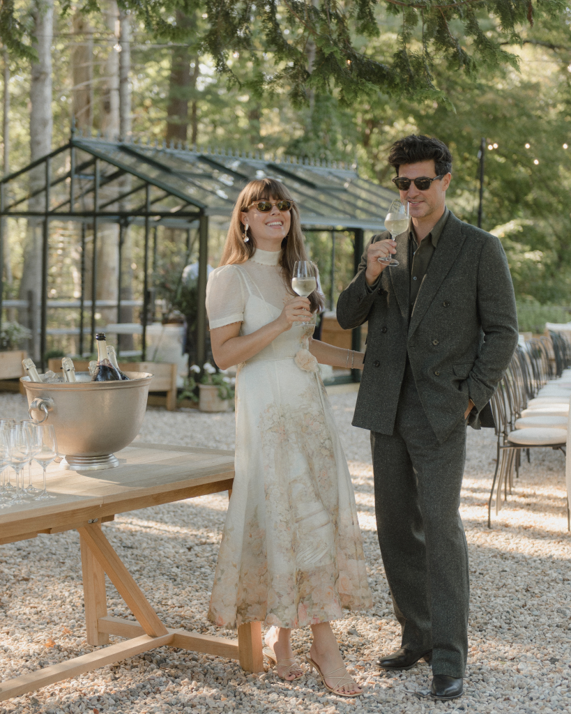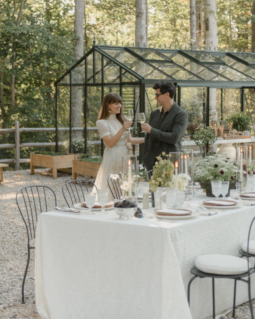 For this intimate garden dinner at Mayflower Inn & Spa, Kadeema provided the bar and seating elements that helped ground the outdoor environment with warmth and intention. A walnut bar, coordinating shelving, and clean-lined dining chairs added structure and function while complementing the natural, understated aesthetic of the event.